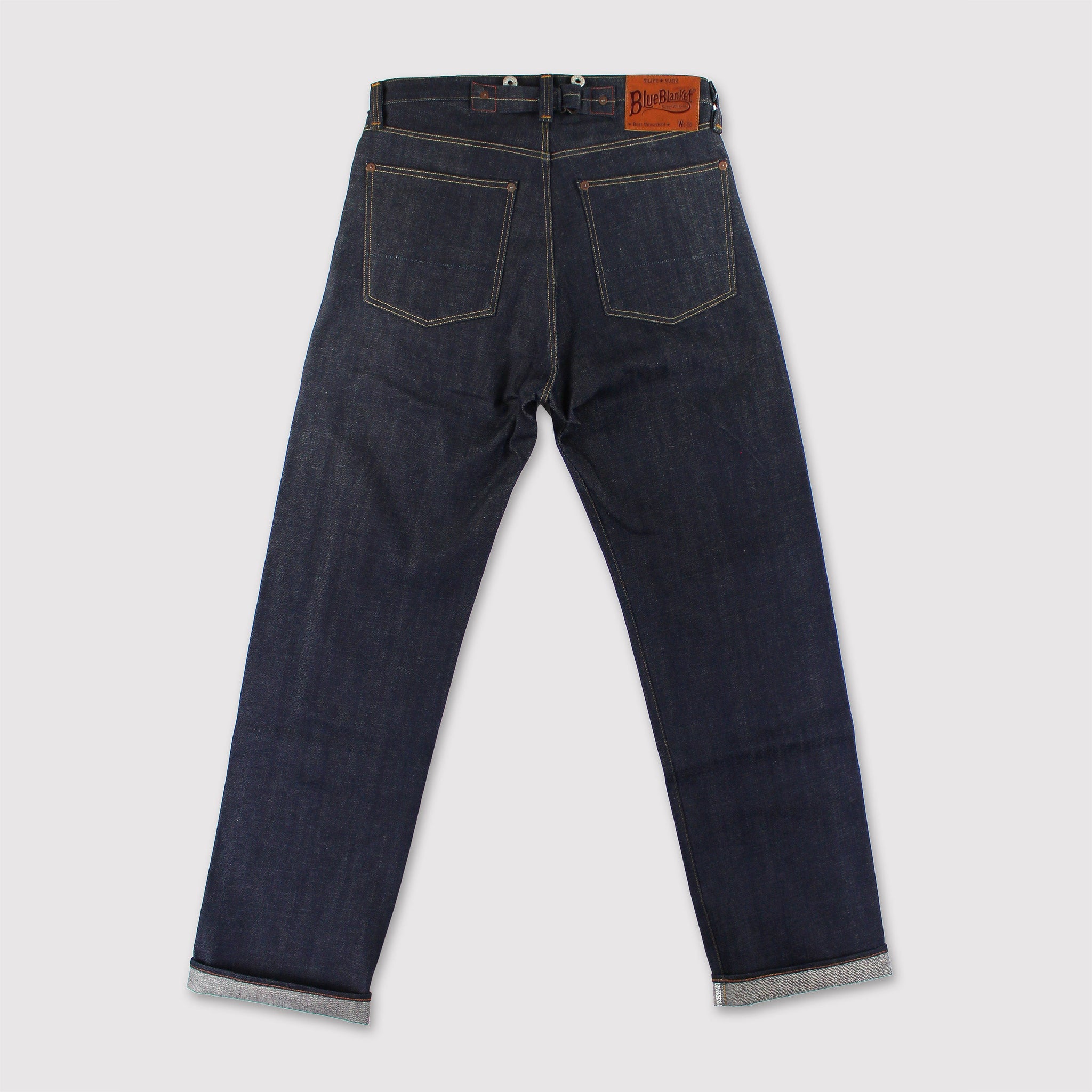 P35 JP14Waist Overall JEANS Inspired from the 1940s, SINGLE NEEDLE PRODUCTION Handcrafted manufacturing 13 oz. Japanese Selvedge Raw Denim MADE IN ITALY
